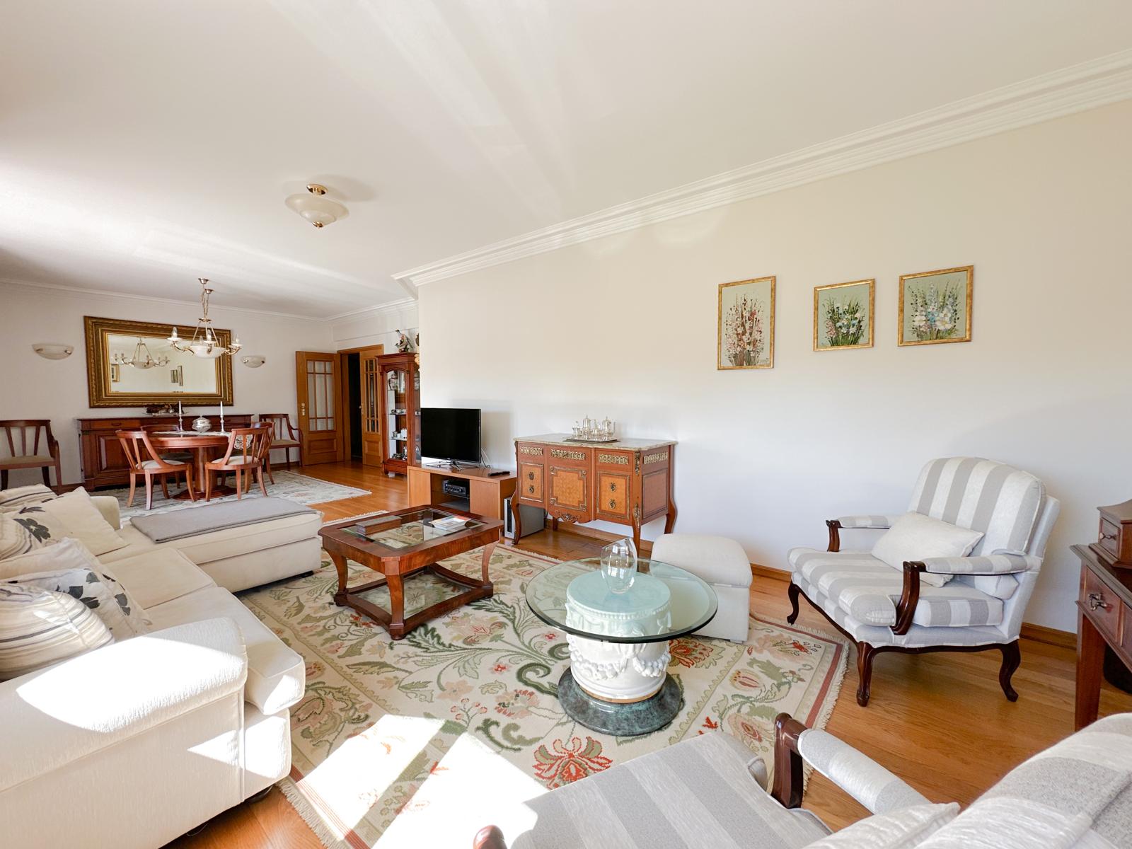 Ideal para famílias com crianças, este apartamento T3+1 está literalmente encostado ao Jardim do Alboi, o parque principal do bairro com 3000 m² de áreas verdes, parque infantil seguro e espaços de lazer a poucos passos da porta. A sala abre para uma varanda perfeita para supervisionar brincadeiras no parque ou tardes em família ao ar livre.