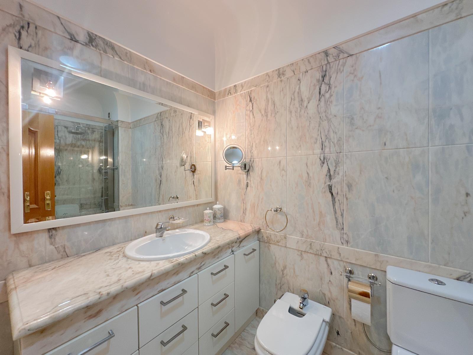 Tem cozinha totalmente equipada, com arrumos. Os três quartos amplos (incluindo suíte) oferecem conforto para todos, com o espaço extra (+1) adaptável a quarto infantil, zona de estudos ou playroom. Garagem para dois carros e arrumo facilitam a rotina familiar agitada.